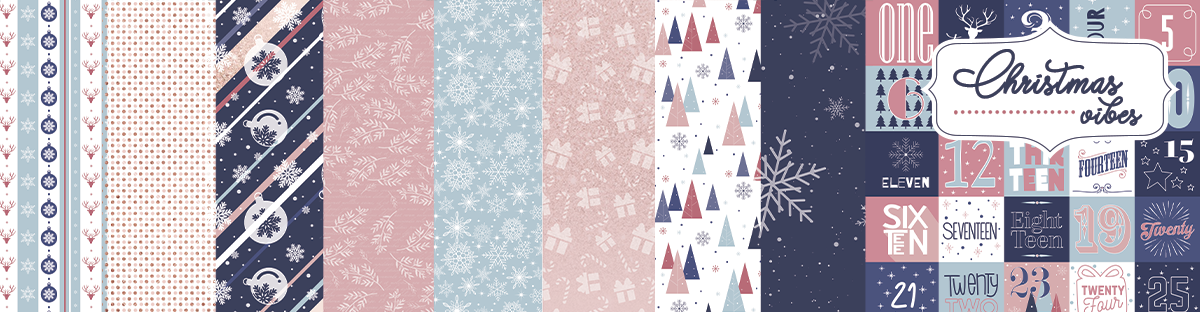 This collection consists of 8 paper designs, 2 of each design, 30cm x 31cm, printed double-sided on 240gsm photo-friendly paper, as well as a page designed just for an advent